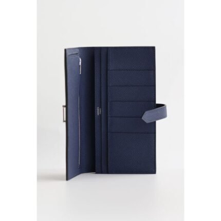 HERM Bearn Long Handmade Wallet in Blue Saphir Epsom Calfskin