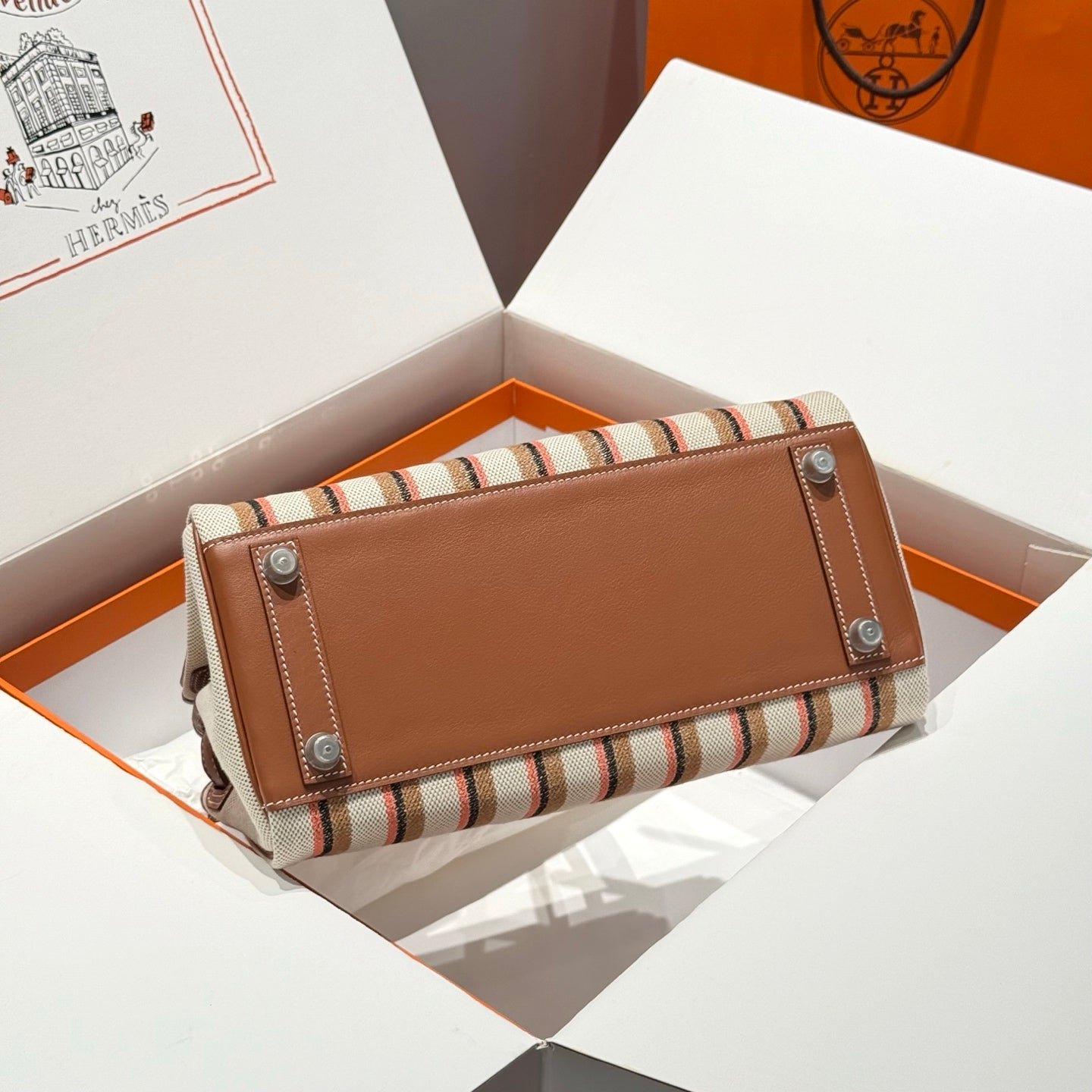 BIRKIN SHOULDER 29 IN GOLD CALFSKIN CRU/BEIGE/FAUVE/ROSE POP/NOIR EMBROIDERY CANVAS