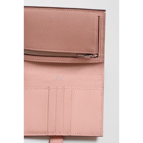 HERM Bearn Compact Handmade Wallet in Rose Sakura Chevre Mysore Goatskin