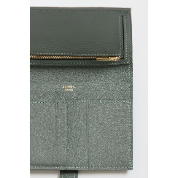 HERM Bearn Compact Handmade Wallet in Vert Amande Chevre Mysore Goatskin