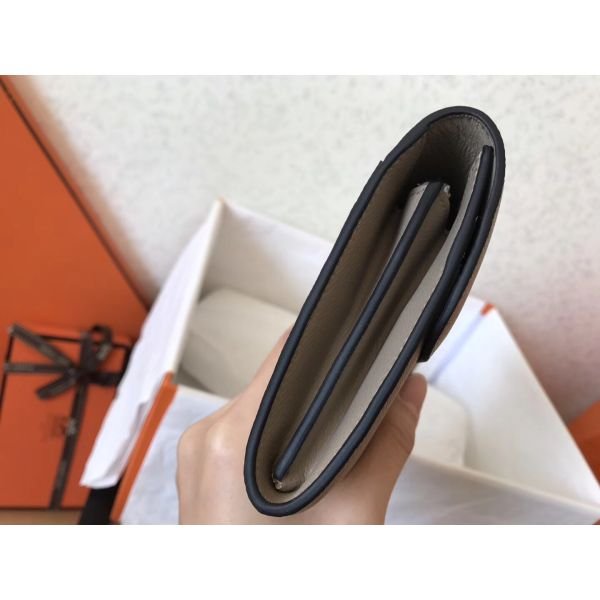 HERM Constance Long Wallet In Grey Epsom Leather