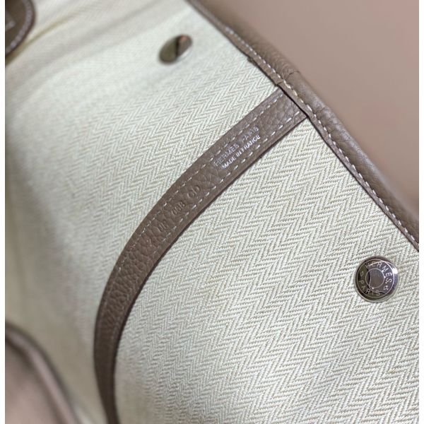 HERM Garden Party 36cm Bag in Toile and Taupe Leather