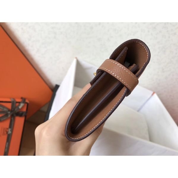 HERM Kelly Classic Long Wallet In Brown Epsom Leather