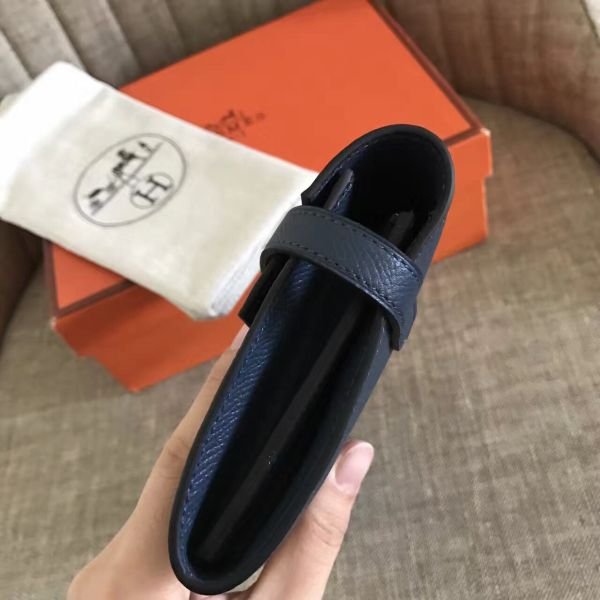 HERM Kelly Classic Long Wallet In Navy Epsom Leather