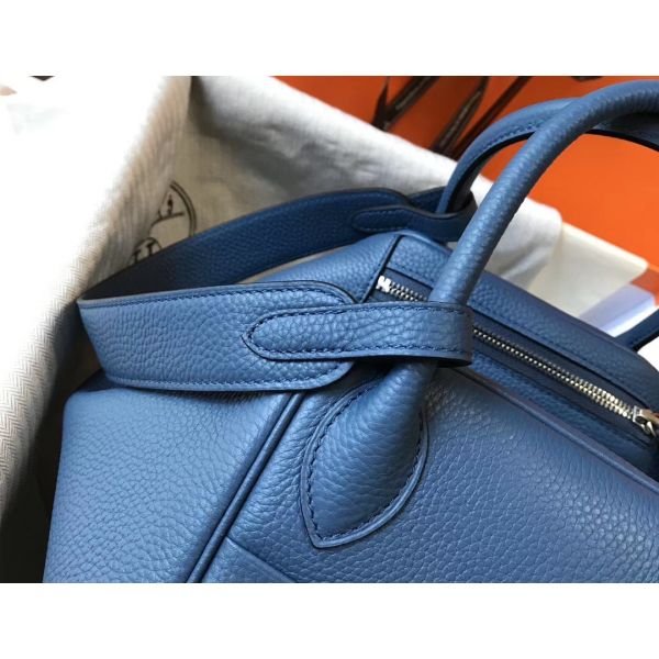 HERM Lindy 30cm Bag In Blue Agate Clemence Leather PHW