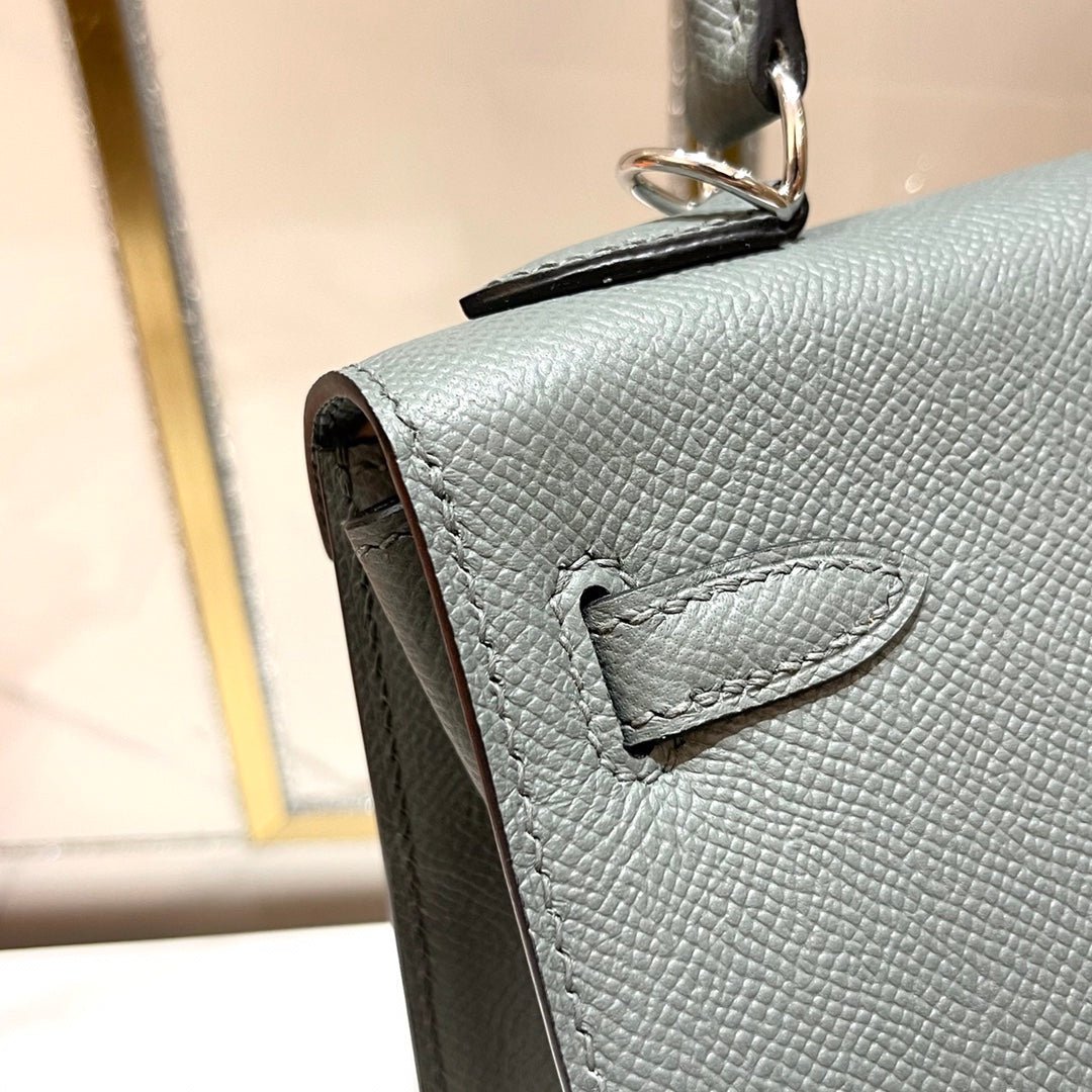 HM KELLY 25CM GRIS MOUETTE EPSOM LEATHER SILVER HARDWARE