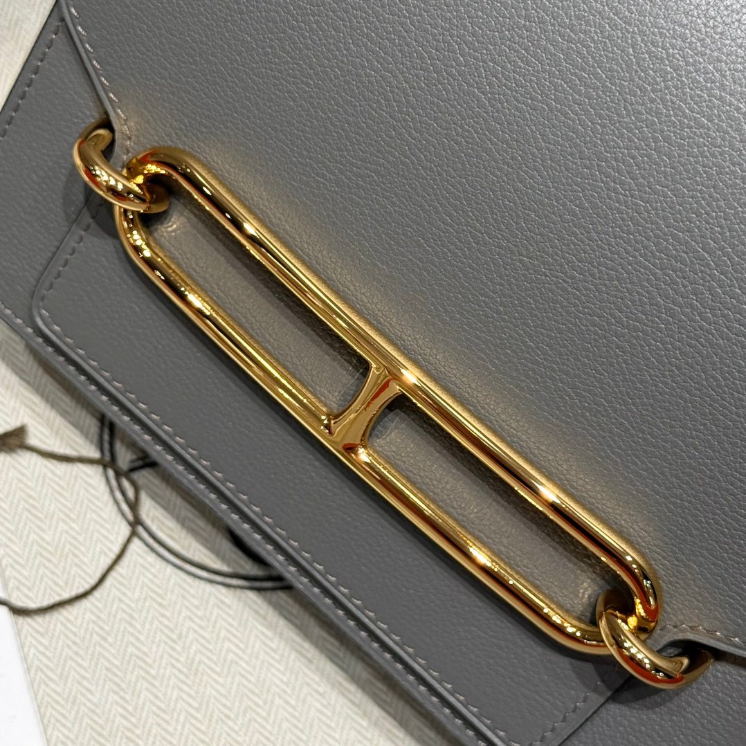 HM ROULIS 18 MINI BAG IN DARK GREY CALFSKIN GOLD-TONE HARDWARE