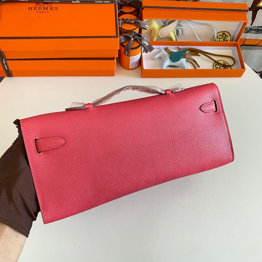 KELLY CUT 31 IN WATERMELON PINK CALFSKIN WITH SILVER HARDWARE